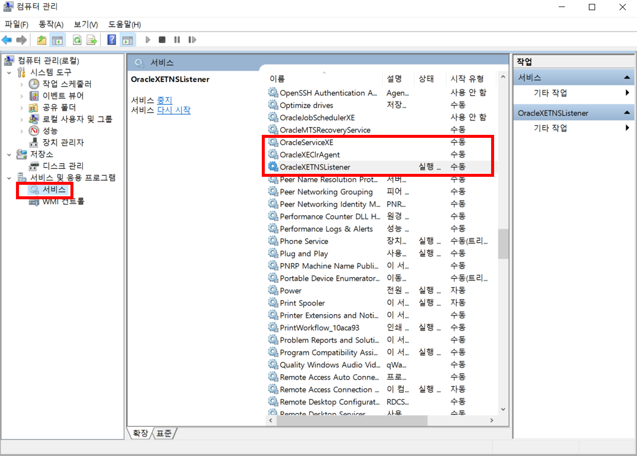 인생,,,, 저번에 컴퓨터 부팅 시 오라클 관련 프로그램들이 자동으로 실행되게 설정해놓으면 부팅이 오래 걸린다는 얘기를 듣고 수동으로 바꿔놓았던 과거의 나가 떠올랐다,,,^^