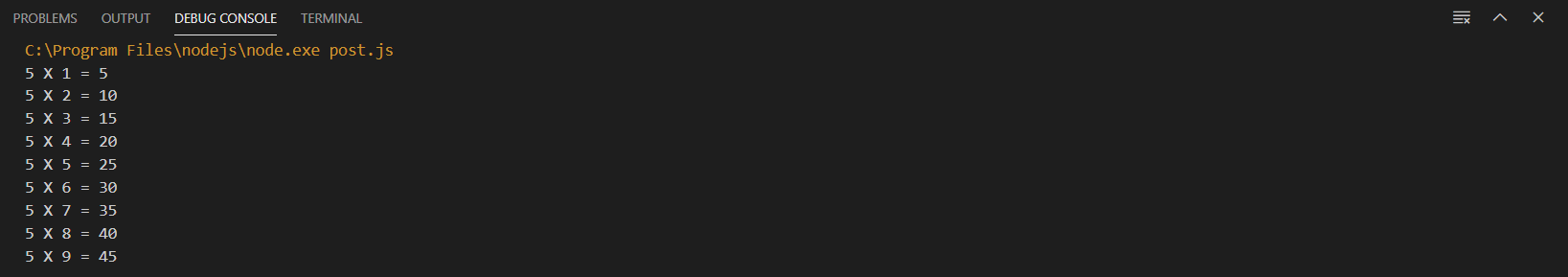 console.log(`${i}`);